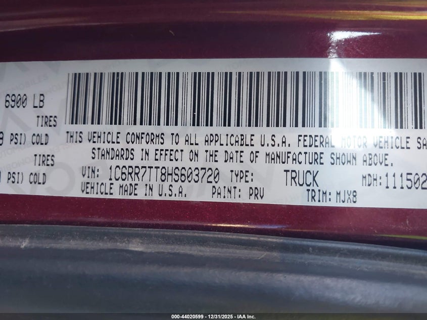 VIN: 1C6RR7TT8HS603720