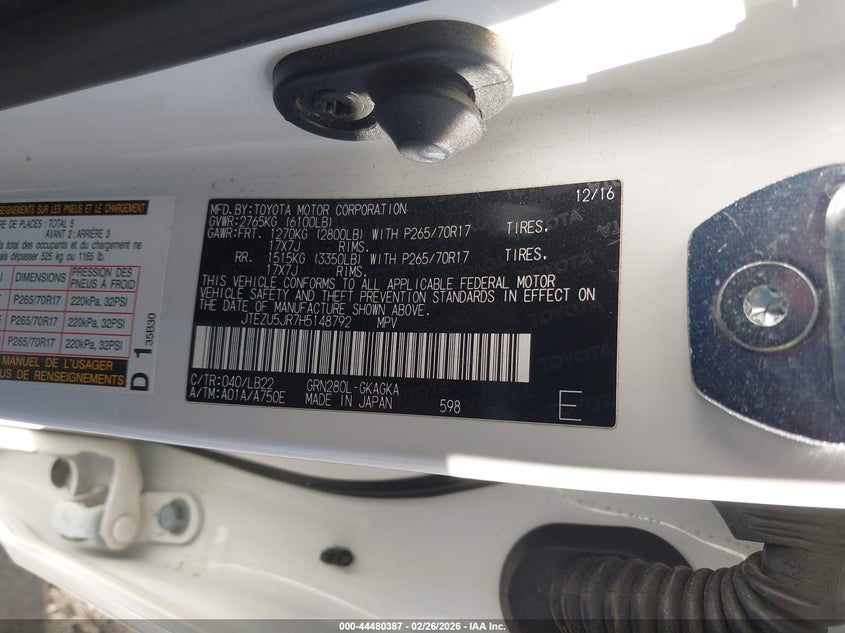 VIN: JTEZU5JR7H5148792