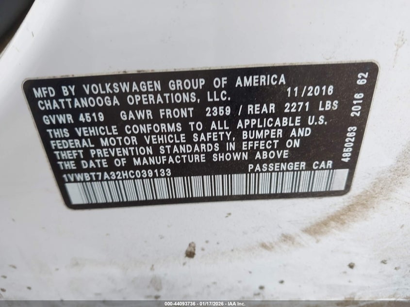 VIN: 1VWBT7A32HC039133