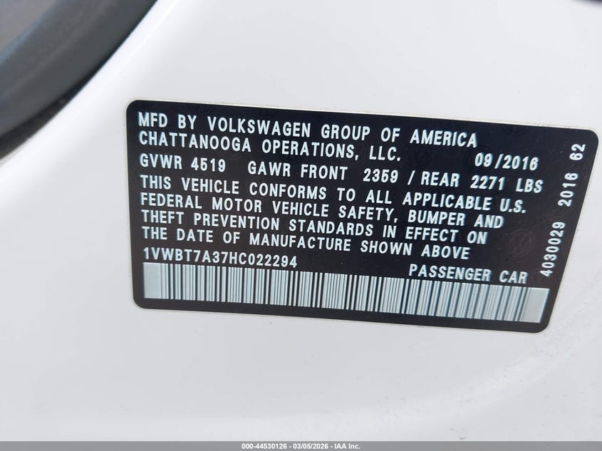 2017 VOLKSWAGEN PASSAT 1.8T SE