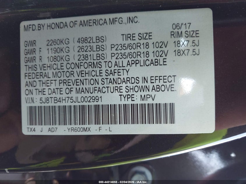 VIN: 5J8TB4H75JL002991