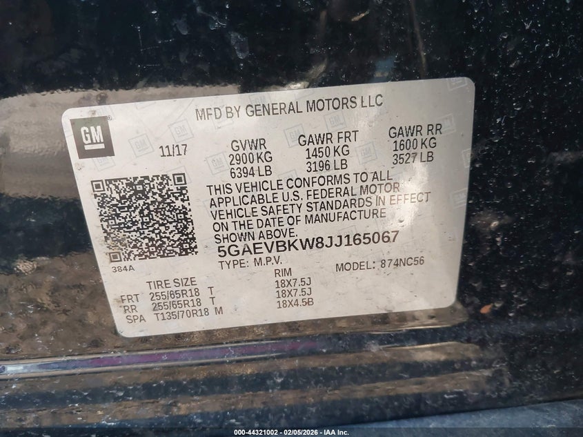 VIN: 5GAEVBKW8JJ165067
