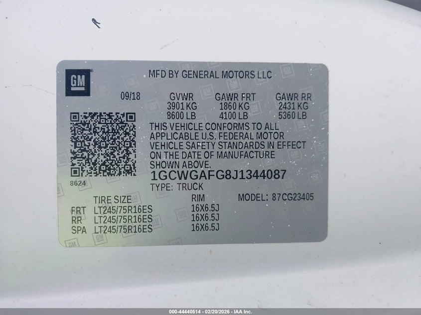 VIN: 1GCWGAFG8J1344087