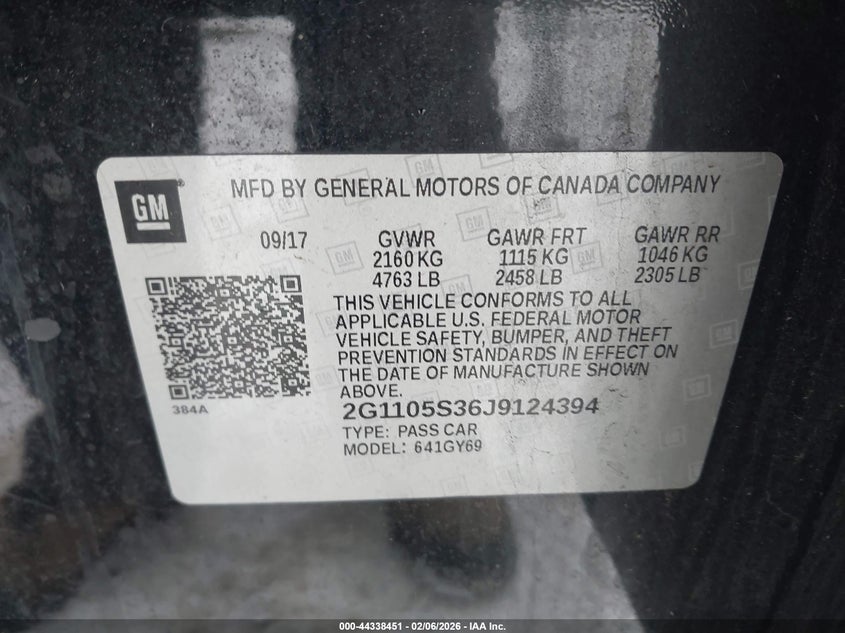 VIN: 2G1105S36J9124394