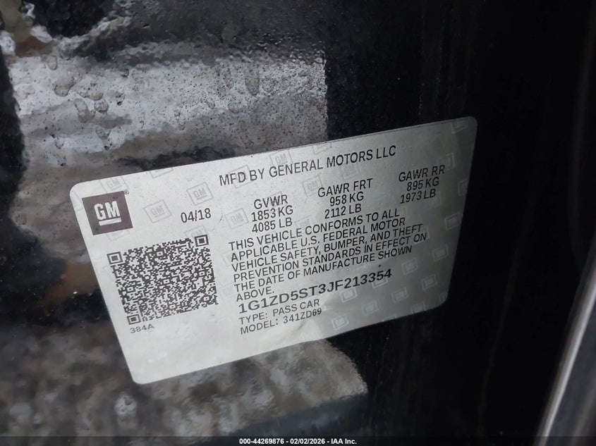 VIN: 1G1ZD5ST3JF213354
