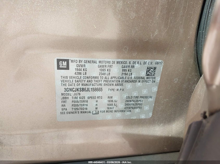 VIN: 3GNCJKSB6JL158665