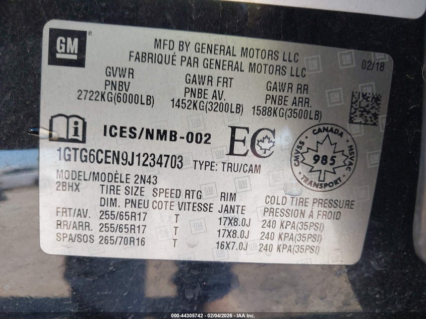 VIN: 1GTG6CEN9J1234703