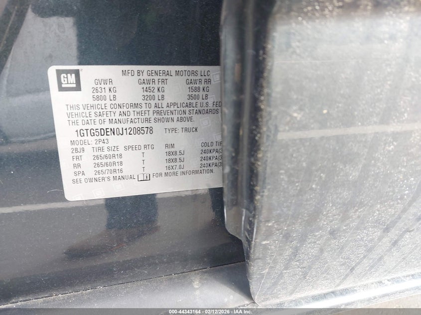 VIN: 1GTG5DEN0J1208578