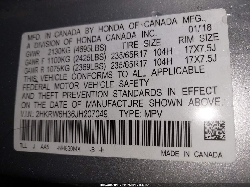 VIN: 2HKRW6H36JH207049