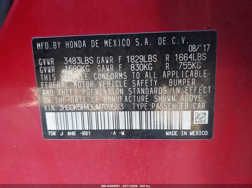 VIN: 3HGGK5H43JM709583