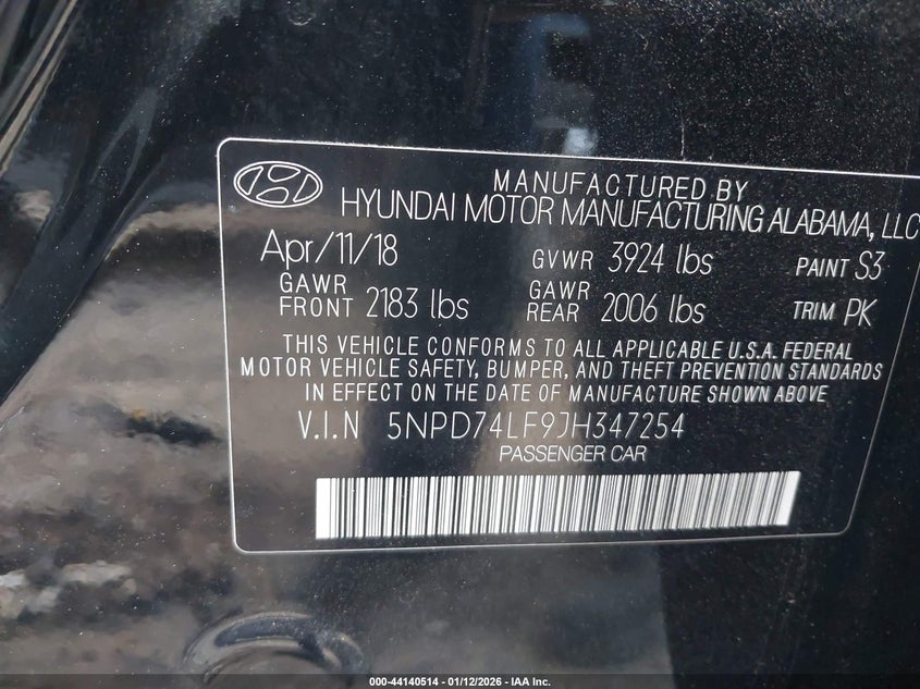 VIN: 5NPD74LF9JH347254