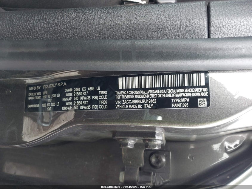 VIN: ZACCJBBB9JPJ19162