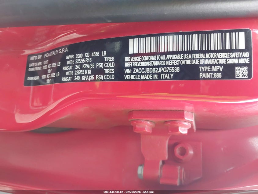 VIN: ZACCJBDB2JPG75538