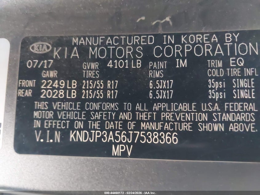 VIN: KNDJP3A56J7538366