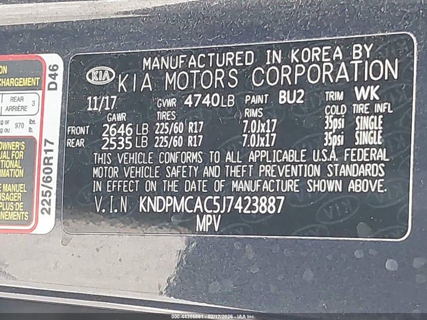 VIN: KNDPMCAC5J7423887