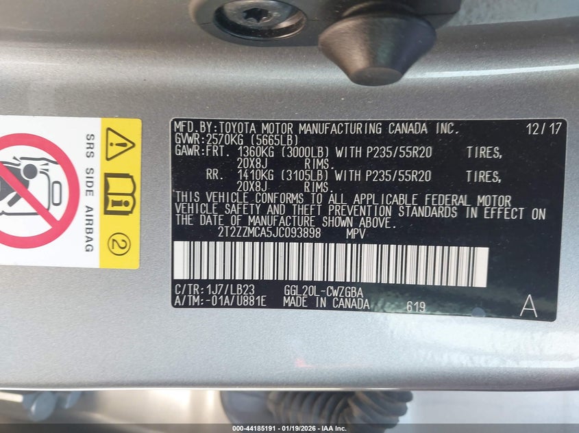 VIN: 2T2ZZMCA5JC093898