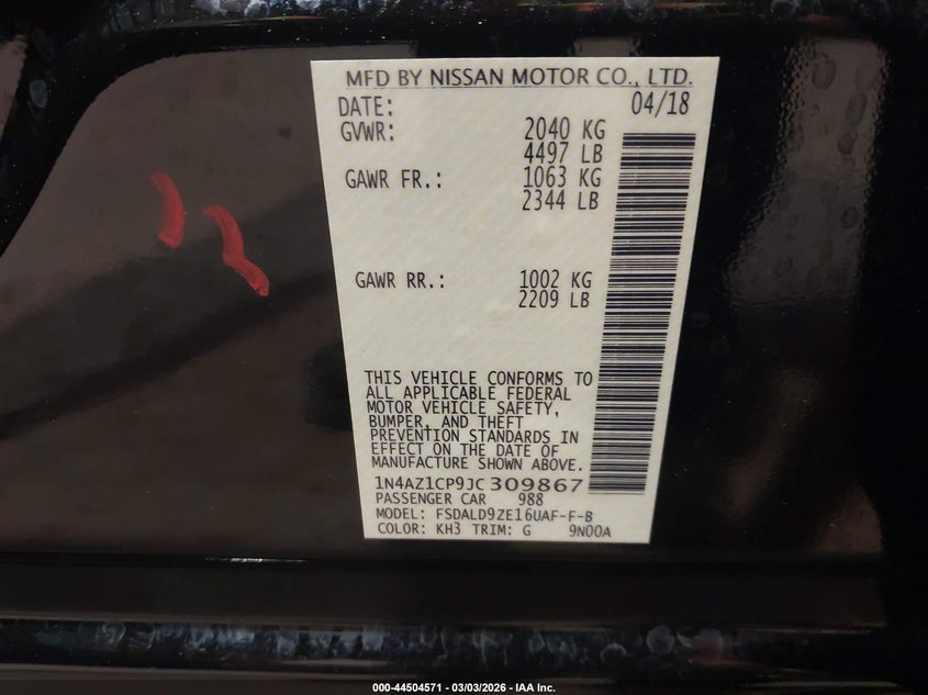 VIN: 1N4AZ1CP9JC309867