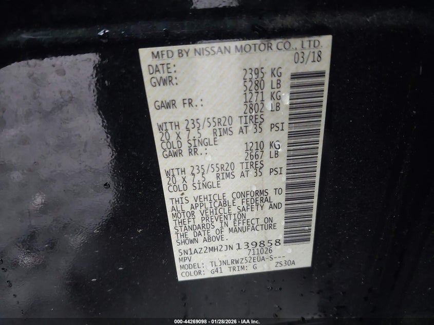 VIN: 5N1AZ2MH2JN139858