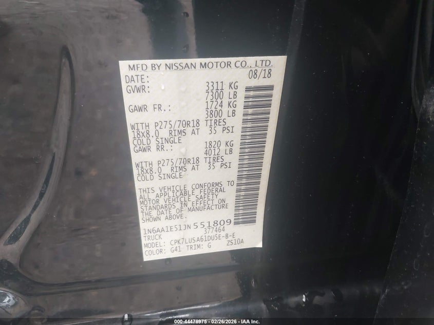 VIN: 1N6AA1E51JN551809