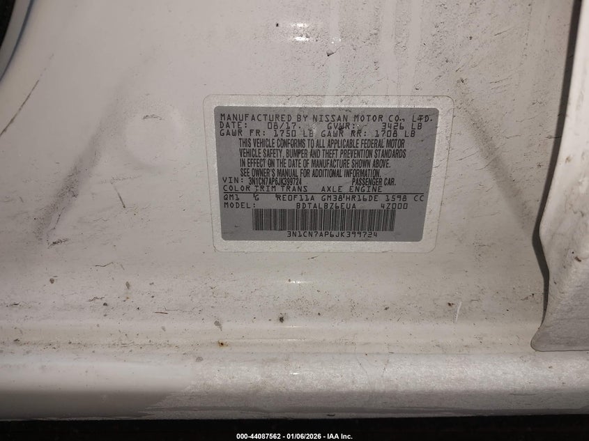 VIN: 3N1CN7AP6JK399724