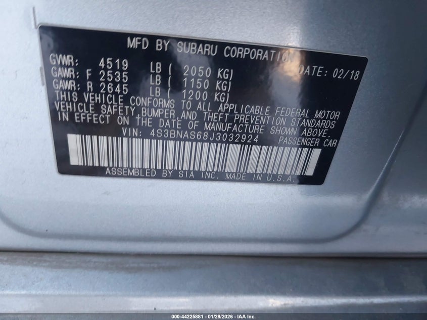 VIN: 4S3BNAS68J3032924