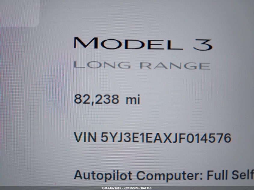 2018 TESLA MODEL 3 LONG RANGE/MID RANGE
