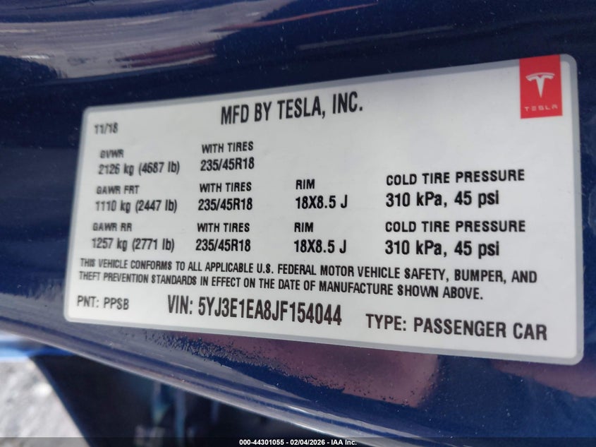 2018 TESLA MODEL 3 LONG RANGE/MID RANGE