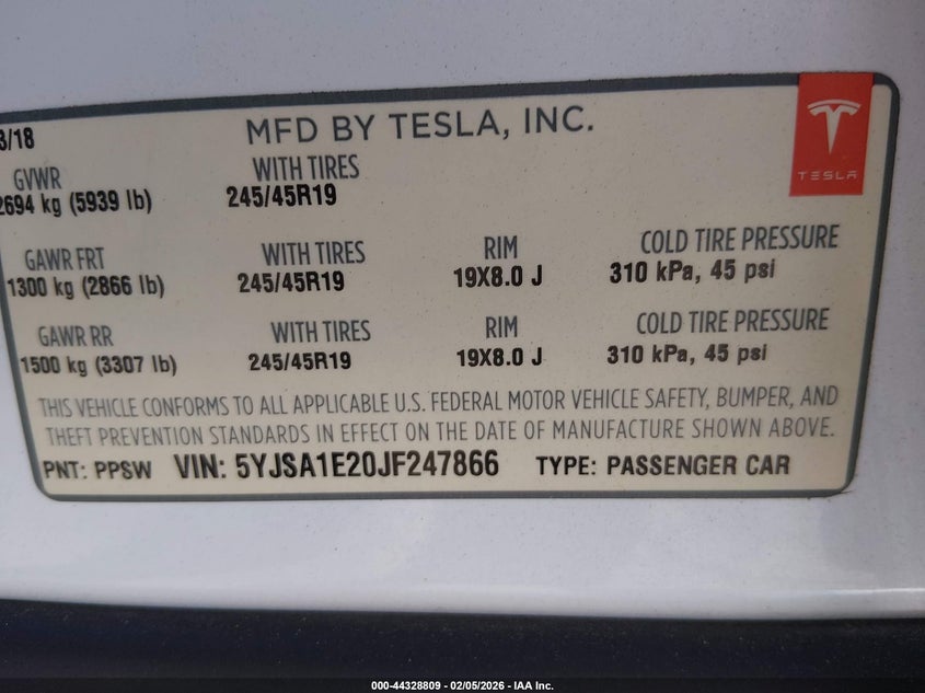 VIN: 5YJSA1E20JF247866