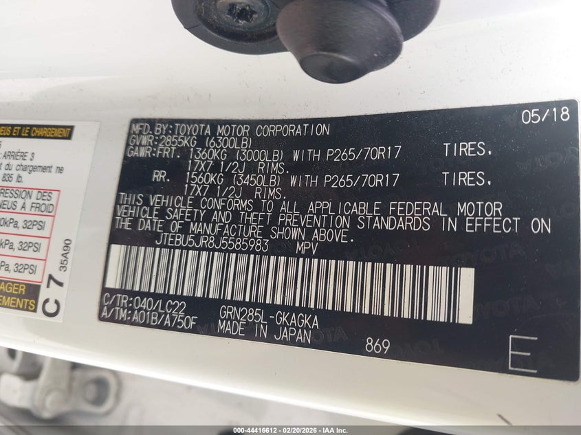 VIN: JTEBU5JR8J5585983