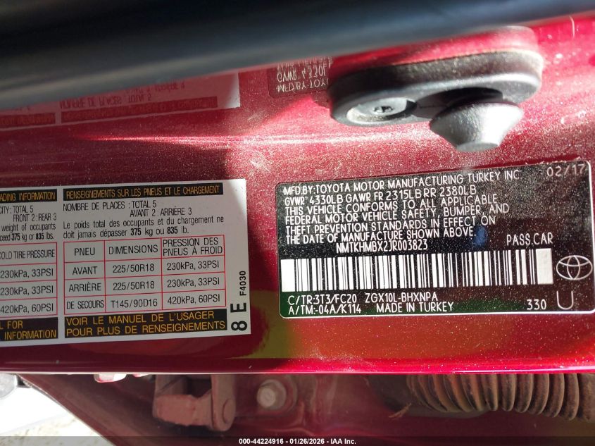 VIN: NMTKHMBX2JR003823