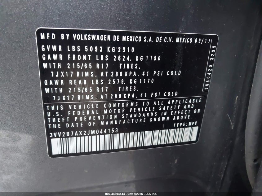 VIN: 3VV2B7AX2JM044153