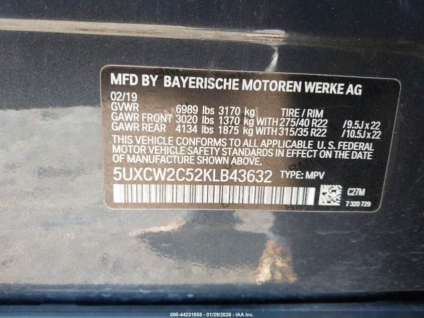 VIN: 5UXCW2C52KLB43632