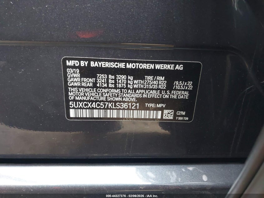 VIN: 5UXCX4C57KLS36121