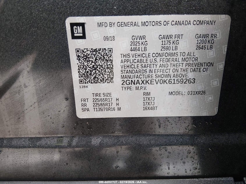 VIN: 2GNAXKEV0K6159263