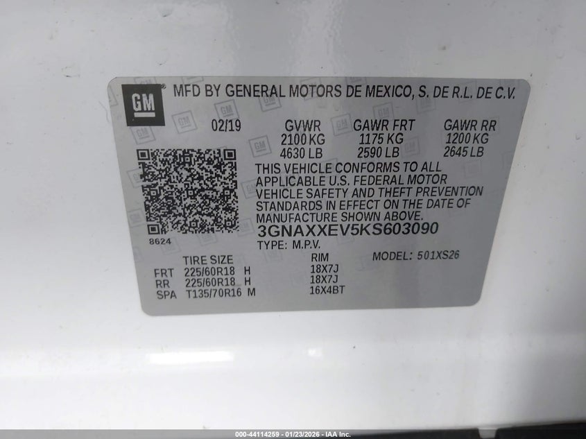 VIN: 3GNAXXEV5KS603090