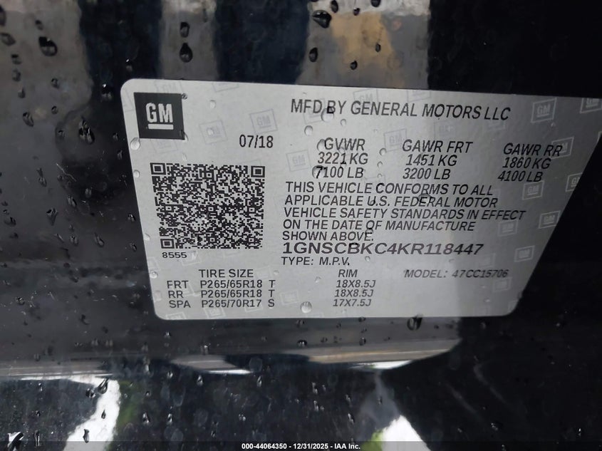 VIN: 1GNSCBKC4KR118447