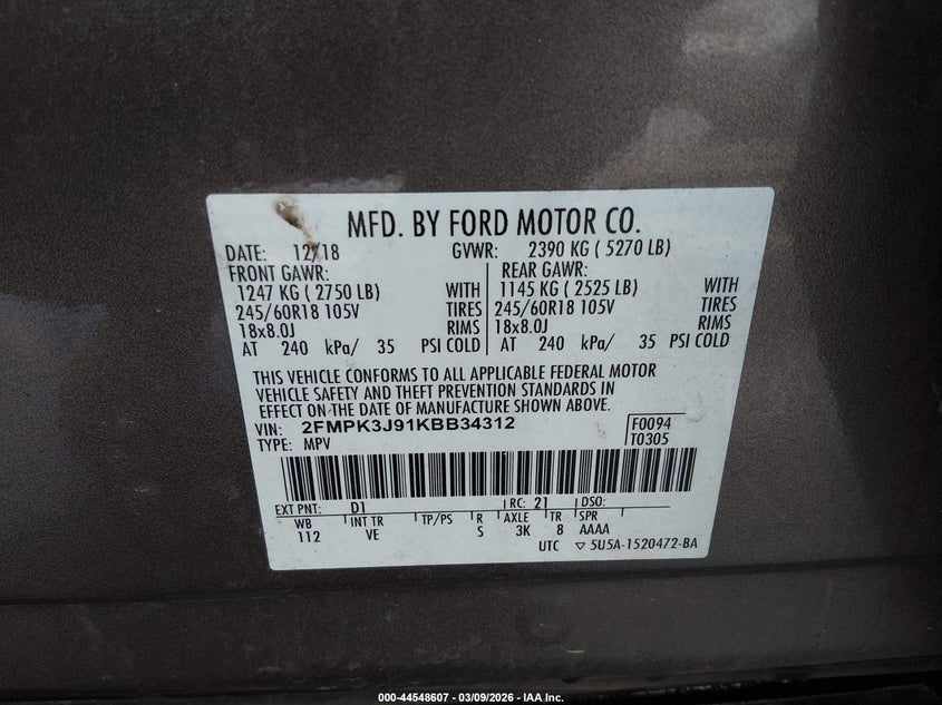VIN: 2FMPK3J91KBB34312