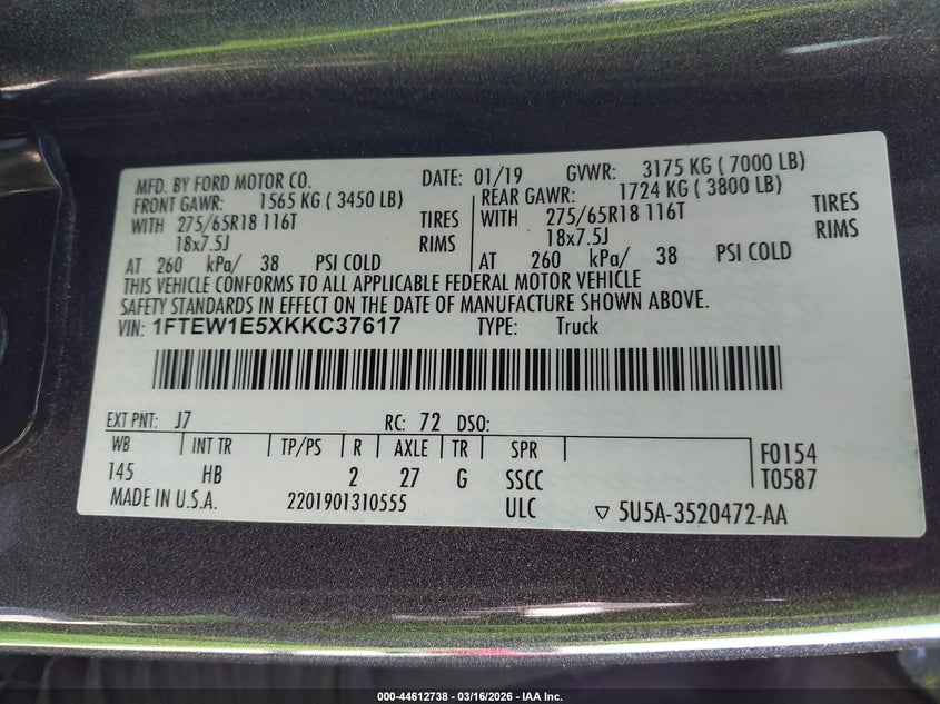 VIN: 1FTEW1E5XKKC37617