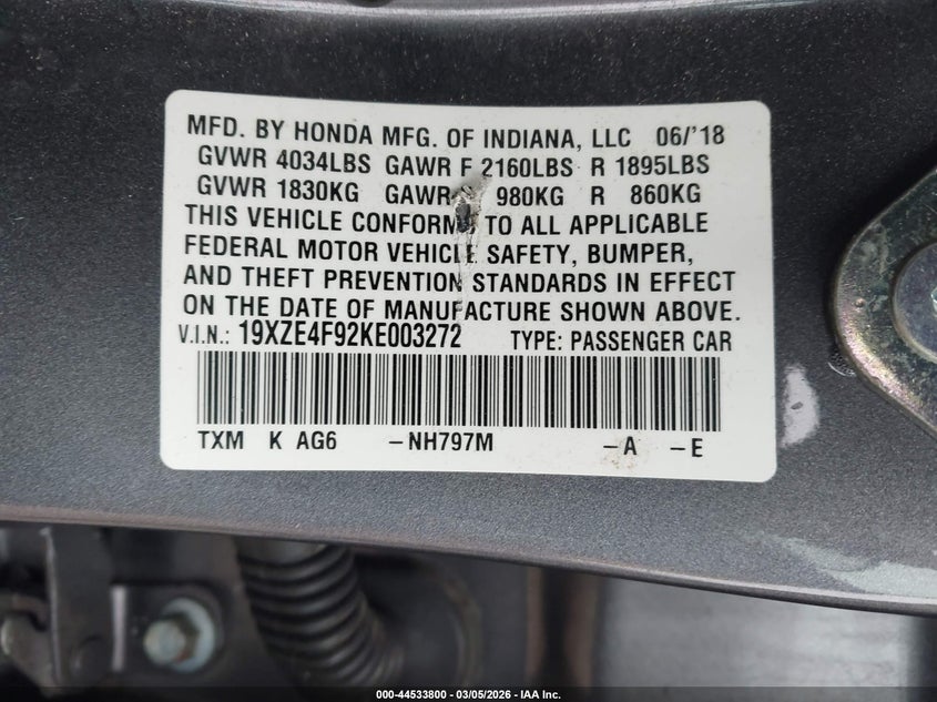 VIN: 19XZE4F92KE003272