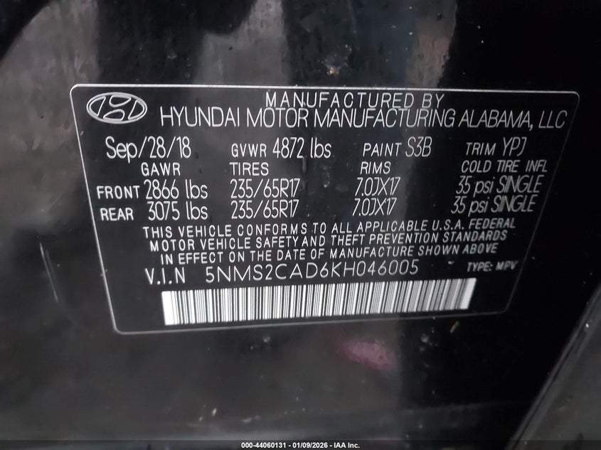 VIN: 5NMS2CAD6KH046005