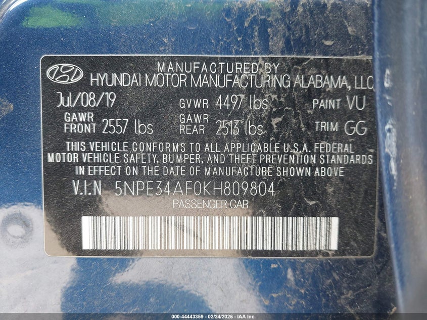 VIN: 5NPE34AF0KH809804