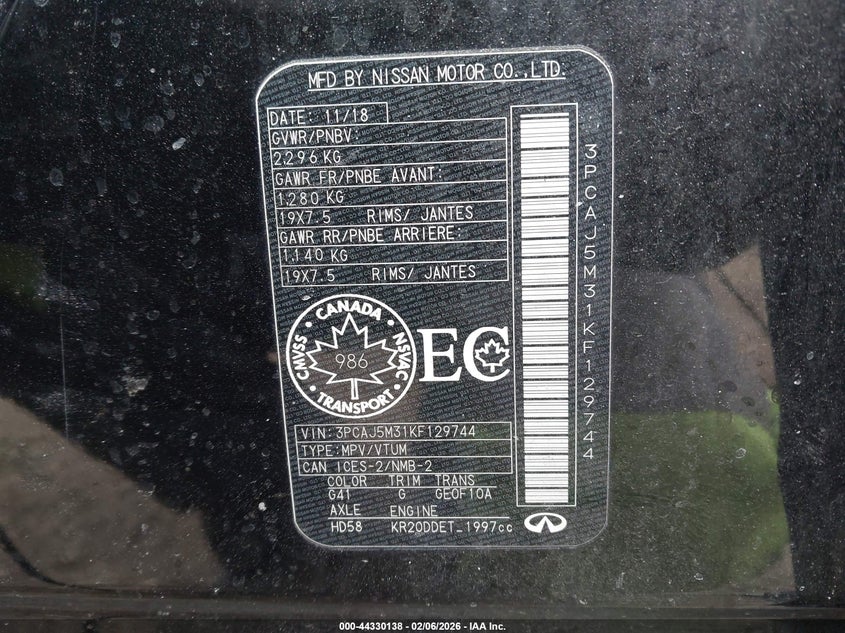 2019 INFINITI QX50 ESSENTIAL/LUXE/PURE