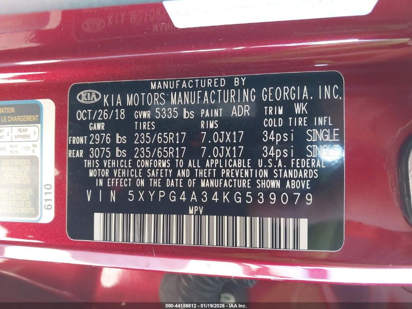 VIN: 5XYPG4A34KG539079