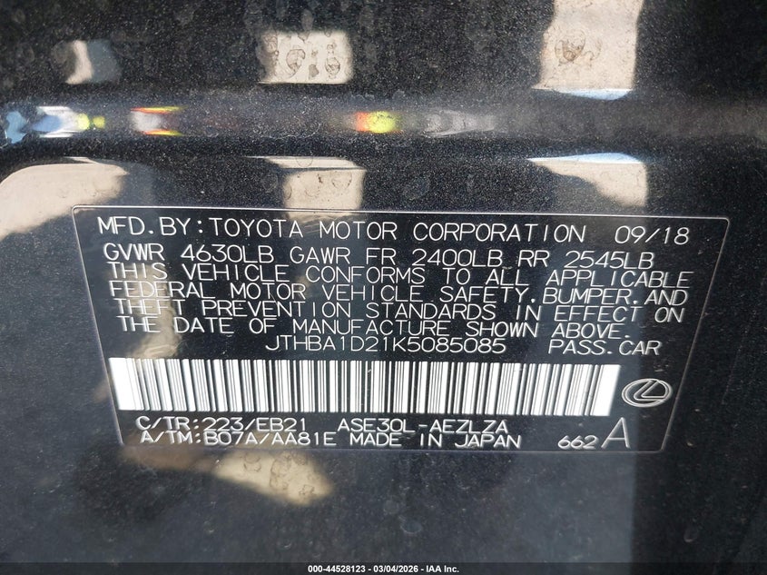 VIN: JTHBA1D21K5085085