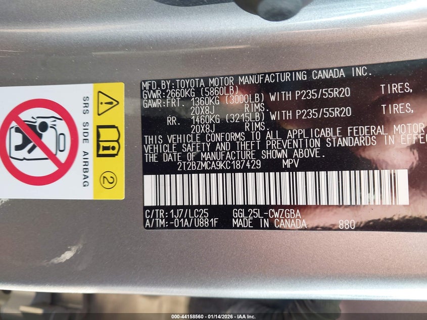 VIN: 2T2BZMCA9KC187429
