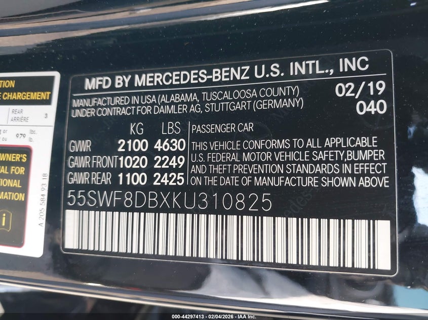 VIN: 55SWF8DBXKU310825