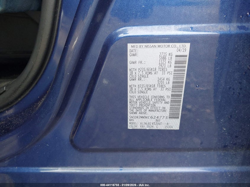 VIN: 5N1DR2MN9KC624773