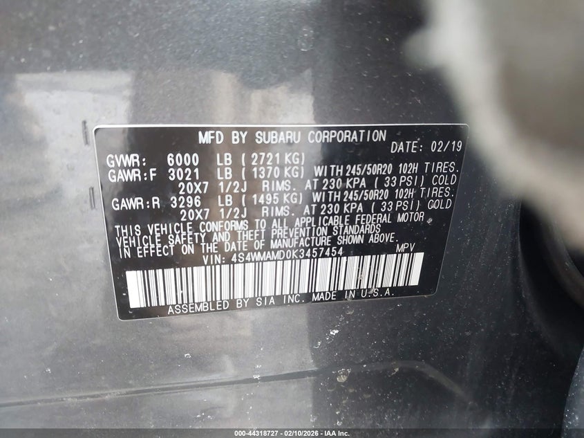 VIN: 4S4WMAMD0K3457454