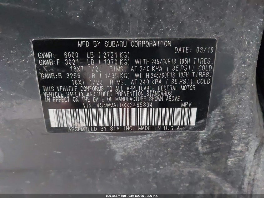 VIN: 4S4WMAFDXK3465834