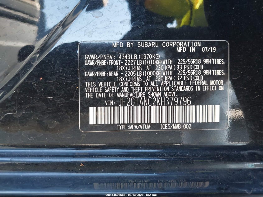 2019 SUBARU CROSSTREK 2.0I LIMITED